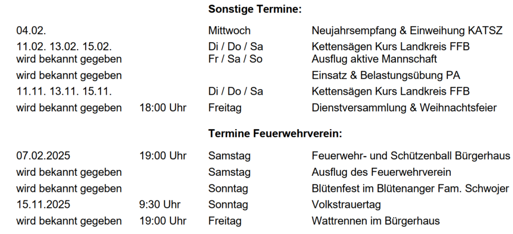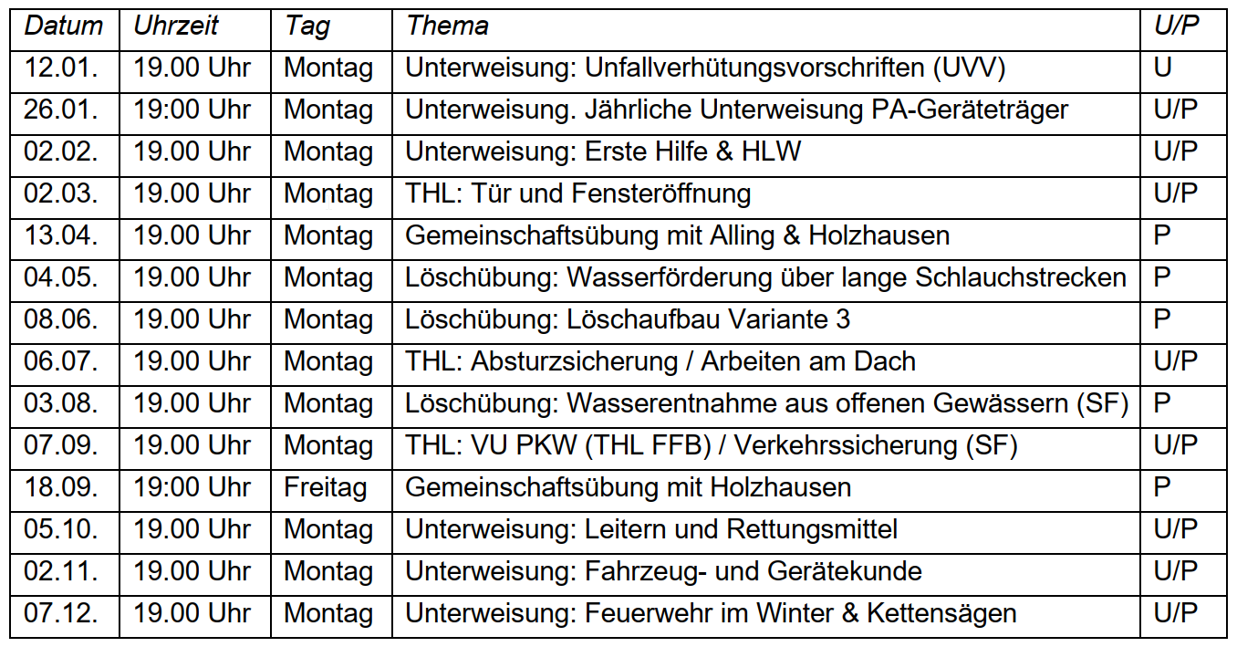 Übungsplan und Termine
